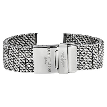 A Breitling Ocean Classic stainless steel mesh bracelet with a fold-over clasp. Lug Size: 24 mm, tapers to 20 mm. Fits models: Chronoliner and Superocean Heritage 46.
