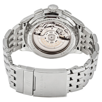 Stainless steel case with a stainless steel bracelet. Fixed stainless steel bezel. Grey dial with luminous silver-tone hands and index hour markers. Minute markers. Tachymeter markings around the outer rim. Dial Type: Analog. Luminescent hands and markers. Date display at the 6 o'clock position. Chronograph - two black sub-dials displaying: 60 second and 30 minute. Breitling calibre 01 automatic movement, containing 47 Jewels, composed of 346 parts, bitting at 28800 vph, and has a power reserve of approximately 70 hours. Scratch resistant sapphire crystal. Pull / push crown. Transparent case back. Round case shape. Case size: 42 mm. Case thickness: 13.65 mm. Band width: 22 mm. Fold over clasp with a safety release. Water resistant at 100 meters / 330 feet. Functions: chronograph, column wheel, date, hour, minute, second, chronometer. Luxury watch style. Watch label: Swiss Made. Breitling Premier B01 Chronograph Automatic Grey Dial Men's Watch AB0118221B1A1.