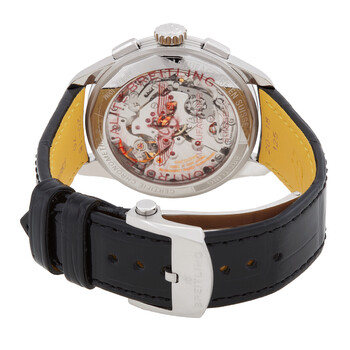 Silver-tone stainless steel case with a black crocodile leather strap. Fixed silver-tone stainless steel bezel. White dial with luminous silver-tone hands and index-Arabic numeral hour markers. Minute markers around the outer rim. Dial Type: Analog. Luminescent hands. Chronograph - two sub-dials displaying: 60 second and 30 minute. Breitling Calibre B09 automatic movement. Scratch resistant sapphire crystal. Pull / push crown. Transparent see through case back. Round case shape, case size: 40 mm, case thickness: 13 mm. Band width: 20 mm. Deployant buckle clasp. Water resistant at 100 meters / 330 feet. Functions: chronograph, hour, minute, second. Additional Info: original box, international warranty card, manual (complete accessories). Premier Heritage Series. Sport watch style. Watch label: Swiss Made. Breitling Premier Heritage Chronograph Automatic White Dial Unisex Watch AB0930371G1P1.