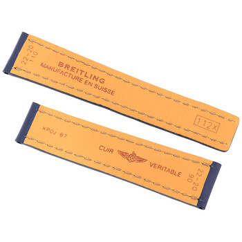 Breitling 22-20mm Blue Leather Strap and White Stitching. Lugs 22 mm, Tapers To 20 mm. Fits all Breitling Models with 22mm Inlet Including: aerospace avantage, airwolf, B1, B2, Bentley Gt, Bentley Gt Racing, Blackbird, Chrono avenger, Chrono avenger M1, Chronomat Evolution, Navitimer, Navitimer Chrono-Matic, Navitimer Cosmonaute, Navitimer Montbrillant Datora, Navitimer Montbrillant Edition, Navitimer Olympus, Seawolf, Skyracer, Superocean Steelfish X-Plus