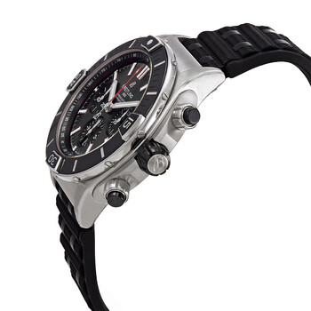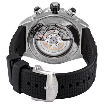 Stainless steel case with a black rubber strap. Uni-directional rotating stainless steel bezel with an inlaid black ceramic ring. Black dial with luminous silver-tone hands and index hour markers. Minute markers. 1/100th second markers. Tachymeter markings around the outer rim. Dial Type: Analog. Luminescent hands and markers. Date display above the 6 o'clock position. Chronograph - three sub-dials displaying: 60 second, 30 minute and 12 hour. Breitling calibre 01 automatic movement, containing 47 Jewels, composed of 346 parts, bitting at 28800 vph, and has a power reserve of approximately 70 hours. Scratch resistant sapphire crystal. Screw down crown. Transparent see through case back. Round case shape. Case size: 44 mm. Case thickness: 14.4 mm. Band width: 22 mm. Fold over clasp with a safety release. Water resistant at 200 meters / 660 feet. Functions: chronograph, column wheel, date, hour, minute, second, chronometer. Super Chronomat B01 Series. Luxury watch style. Watch label: Swiss Made. Breitling Super Chronomat B01 Chronograph Automatic Chronometer Black Dial Men's Watch AB0136251B2S1.