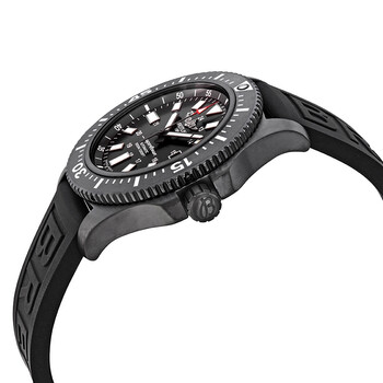 Breitling blacksteel steel case with a black diver pro iii band. Uni-directional rotating black ceramic bezel. Volcano black dial with index hour markers. Minute markers around the outer rim. Dial Type: Analog. Luminescent hands and markers. Date display at the 3 o'clock position. Breitling Calibre 17 automatic movement with a 38-hour power reserve. Scratch resistant sapphire crystal. Screw down crown. Round case shape, case size: 44 mm, case thickness: 14.20 mm. Band width: 22/20 mm. Fold over with safety release clasp. Water resistant at 1000 meters / 3300 feet. Functions: date, hour, minute, second. Luxury watch style. Watch label: Swiss Made. Breitling Superocean 44 Volcano Black Dial Automatic Men's Watch M17393131B1S1.