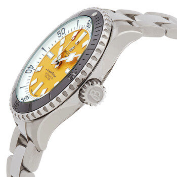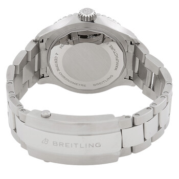Silver-tone stainless steel case and bracelet. Uni-directional rotating silver tone with black inlaid ring stainless steel bezel. Yellow dial with luminous silver-tone hands and batons hour markers. Minute markers around the outer rim. Dial Type: Analog. Luminescent hands and markers. Breitling Calibre 17 Automatic movement, based upon ETA 2824-2, containing 25 Jewels, bitting at 28800 vph, and has a power reserve of approximately 42 hours. Scratch resistant sapphire crystal. Screw down crown. Solid case back. Round case shape, case size: 42 mm, case thickness: 12.56 mm. Band width: 22 mm. Folding clasp. Water resistant at 300 meters / 1000 feet. Functions: hour, minute, second. Superocean Series. Sport watch style. Watch label: Swiss Made. Breitling Superocean Automatic Men's Watch A17375211I1A1.