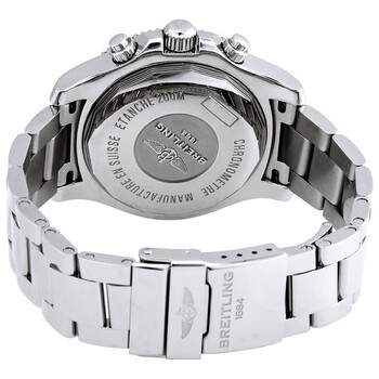 Stainless steel case with a stainless steel bracelet. Uni-directional rotating ratcheted stainless steel bezel with a black (count-up elapsed time) ring. Black dial with luminous silver-tone hands and Arabic numeral hour markers. Minute markers. 1/100th second markers around the outer rim. Dial Type: Analog. Luminescent hands and markers. Date display at the 3 o'clock position. Chronograph - three sub-dials displaying: 60 second, 30 minute and 12 hour. Breitling calibre 13 automatic movement, based upon ETA Valjoux 7750, containing 25 Jewels, bitting at 28800 vph, and has a power reserve of approximately 42 hours. Scratch resistant sapphire crystal. Screw locked - two gaskets crown. Solid case back. Round case shape. Case size: 42 mm. Case thickness: 15.25 mm. Band width: 20 mm. Fold over clasp. Water resistant at 200 meters / 660 feet. Functions: chronograph, date, hour, minute, second, chronometer. Superocean Series. Sport watch style. Watch label: Swiss Made. Breitling Superocean Chronograph Automatic Chronometer Black Dial Men's Watch A13311C91B1A1.