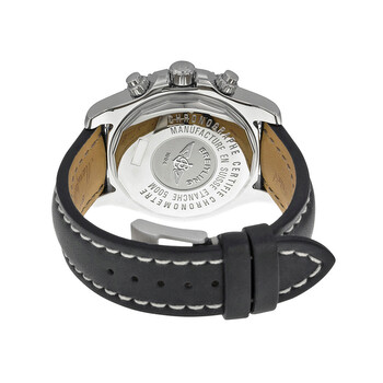 Stainless steel case with a black leather strap. Uni-directional rotating stainless steel bezel with blue top ring. Black dial with luminous hands and index hour markers. Minute markers. 1/100th markers around the outer rim. Dial Type: Analog. Luminescent hands and markers. Date display at the 3 o'clock position. Chronograph - three sub-dials displaying: 60 second, 30 minute and 12 hour. Automatic movement with a 42 hour power reserve. Scratch resistant sapphire crystal. Screw locked crown - two gaskets. Solid case back. Case diameter: 44 mm. Case thickness: 17.2 mm. Round case shape. Band width: 22 mm. Deployment clasp. Water resistant at 500 meters / 1650 feet. Functions: chronograph, date, hour, minute, second. Casual watch style. Breitling Superocean Chronograph II Automatic Black Dial Black Leather Men's Watch A1334102-ba85bklt.