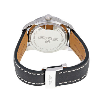 Stainless steel case with a black leather strap. Uni-directional rotating stainless steel bezel with a black top ring. Black dial with luminous silver-tone hands and index hour markers. Minute markers around the outer rim. Dial Type: Analog. Luminescent hands and markers. Date display at the 6 o'clock position. Automatic movement with a 40-hour power reserve. Scratch resistant sapphire crystal. Screw locked crown. Solid case back. Case diameter: 46 mm. Case thickness: 13.60 mm. Round case shape. Band width: 24 mm / 20 mm. Deployment clasp. Water resistant at 200 meters / 660 feet. Functions: date, hour, minute, second. Luxury watch style. Watch label: Swiss Made. Item Variations: A1732024/B868 442X-A20D.1. Breitling Superocean Heritage 46 Automatic Black Dial Black Leather Men's Watch A1732024-B868BKLD.