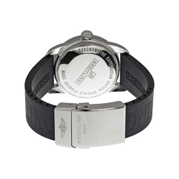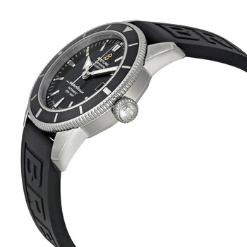 Stainless steel case with a black rubber strap. Uni-directional rotating stainless steel bezel with a black top ring. Black dial with luminous hands and index hour markers. Minute markers around the outer rim. Dial Type: Analog. Luminescent hands and markers. Date display at the 3 o'clock position. Automatic movement with a 40 hour power reserve. Scratch resistant sapphire crystal. Screw locked crown - two gaskets. Solid case back. Case diameter: 42 mm. Case thickness: 12.95 mm. Round case shape. Band width: 20 mm / 22 mm. Deployment clasp. Water resistant at 200 meters / 660 feet. Functions: date, hour, minute, second. Luxury watch style. Watch label: Swiss Made. Item Variations: A1732124 BA61BKPD3, A1732124.BA61BKPD3, A1732124BA61BKPD3. Breitling Superocean Heritage Automatic Black Dial Black Rubber Men's Watch A1732124-BA61BKPD3.