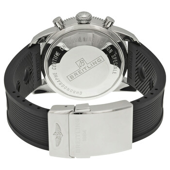 Stainless steel case with a black ocean racer bracelet. Uni-directional rotating stainless steel bezel with a black top ring. Blue dial with luminous hands and index hour markers. Minute markers around the outer rim. Dial Type: Analog. Luminescent hands and markers. Date display at the 3 o'clock position. Chronograph - three sub-dials displaying: 60 second, 30 minute and 12 hour. BreitlingcCalibre 13 automatic movement with a 42-hour power reserve. Scratch resistant sapphire crystal. Screw locked crown. Solid case back. Case size: 46 mm. Case thickness: 16.40 mm. Round case shape. Band width: 24 mm. Deployment clasp. Water resistant at 200 meters / 660 feet. Functions: chronograph, date, hour, minute, second. Luxury watch style. Watch label: Swiss Made. Item Variations: A1332024 C817BKOR, A1332024.C817BKOR, A1332024C817BKOR. Breitling Superocean Heritage Chronograph Blue Dial Automatic Men's Watch A1332024-C817BKOR.