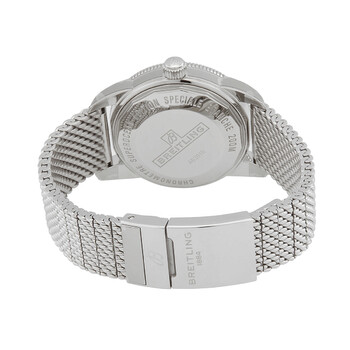 Silver-tone stainless steel case and bracelet. Uni-directional rotating black stainless steel bezel. Green dial with silver-tone hands and index hour markers. Minute markers around the outer rim. Dial Type: Analog. Luminescent hands and markers. Date display at the 6 o'clock position. Breitling Calibre 20 Automatic movement, based upon Tudor MT5612, containing 28 Jewels, bitting at 28800 vph, and has a power reserve of approximately 70 hours. Scratch resistant sapphire crystal. Screw down crown. Solid case back. Round case shape, case size: 42 mm. Fold over clasp. Water resistant at 200 meters / 660 feet. Functions: date, hour, minute, second, chronometer. Additional Info: original box, manual (complete accessories). Superocean Heritage Series. Luxury watch style. Watch label: Swiss Made. Breitling Superocean Heritage Automatic Chronometer Green Dial Men's Watch AB2010121L1A1.