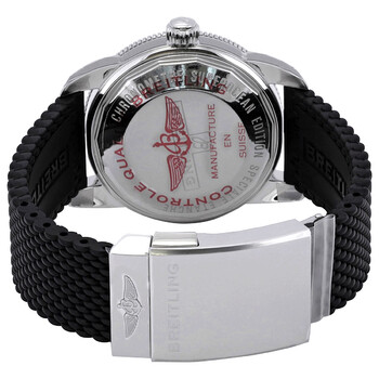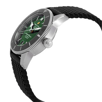 Silver-tone stainless steel case with a black rubber strap. Uni-directional rotating black ceramic bezel. Green dial with silver-tone hands and index hour markers. Minute markers around the outer rim. Dial Type: Analog. Luminescent hands and markers. Date display at the 6 o'clock position. Breitling Calibre 20 Automatic movement, based upon Tudor MT5612, containing 28 Jewels, bitting at 28800 vph, and has a power reserve of approximately 70 hours. Scratch resistant sapphire crystal. Screw down crown. Solid case back. Round case shape, case size: 42 mm. Deployment with push button release clasp. Water resistant at 200 meters / 660 feet. Functions: date, hour, minute, second, chronometer. Additional Info: original box, international warranty card, manual (complete accessories). Superocean Heritage Series. Luxury watch style. Watch label: Swiss Made. Breitling Superocean Heritage Automatic Chronometer Green Dial Men's Watch AB2010121L1S1.
