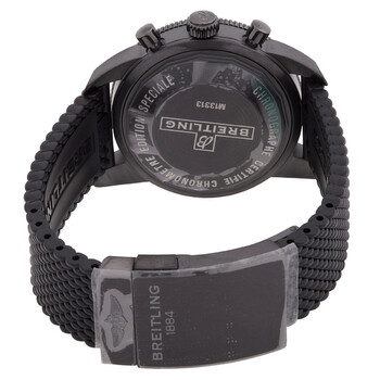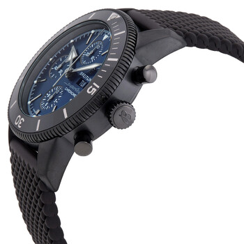 Stainless steel case with a black rubber strap. Uni-directional rotating stainless steel with a black ceramic top ring bezel. Index hour markers. Minute markers around the outer rim. Dial Type: Analog. Luminescent hands and markers. Day of the week and date display at the 3 o'clock position. Chronograph - three sub-dials displaying: 60 second, 30 minute and 12 hour. Breitling Calibre 13 Automatic movement, based upon ETA Valjoux 7750, containing 25 Jewels, bitting at 28800 vph, and has a power reserve of approximately 42 hours. Scratch resistant sapphire crystal. Screw locked crown. Solid case back. Round case shape, case size: 44 mm, case thickness: 15.65 mm. Band width: 22 mm. Tang clasp. Water resistant at 200 meters / 660 feet. Functions: chronograph, date, day, hour, minute, second, chronometer. Superocean Series. Luxury watch style. Watch label: Swiss Made. Breitling Superocean Heritage II Chronograph Automatic Chronometer Men's Watch M13313101C1S1.