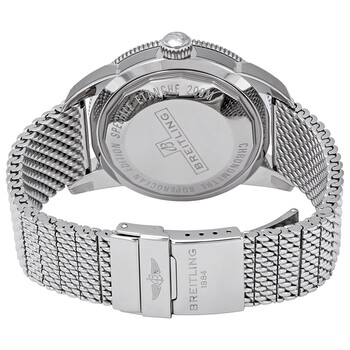 Stainless steel case with a stainless steel mesh bracelet. Uni-directional rotating stainless steel bezel with a blue ceramic top ring. Blue dial with luminous silver-tone hands and index hour markers. Minute markers around the outer rim. Dial Type: Analog. Luminescent hands and markers. Date display at the 6 o'clock position. Breitling calibre 20 automatic movement with a 70-hour power reserve. Scratch resistant sapphire crystal. Screw locked crown. Solid case back. Round case shape. Case size: 44 mm. Case thickness: 14.55 mm. Band width: 22 mm. Fold over with safety release clasp. Water resistant at 200 meters / 660 feet. Functions: date, hour, minute, second, chronometer. Luxury watch style. Watch label: Swiss Made. Item Variations: AB203016-C955-154A. Breitling Superocean Heritage II Automatic Chronometer Blue Dial Men's Watch AB2030161C1A1.