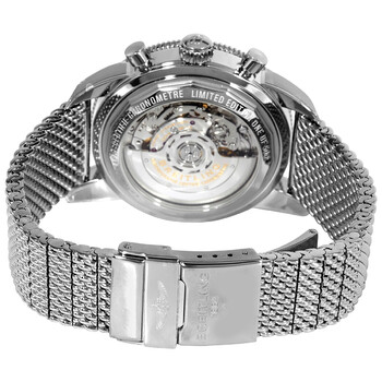 Stainless steel case with a stainless steel mesh bracelet. Uni-directional rotating stainless steel bezel with a black ring. Green dial with luminous grey hands and index hour markers. Minute markers around the outer rim. Dial Type: Analog. Luminescent hands and markers. Date display between the 4 and 5 o'clock positions. Chronograph - three grey sub-dials displaying: 60 second, 30 minute and 12 hour. Breitiling Caliber 01 automatic movement with a 70-hour power reserve. Scratch resistant sapphire crystal. Screw locked crown. Solid case back. Round case shape. Case size: 44 mm. Case thickness: 15.5 mm. Band width: 22 mm / 20 mm. Deployment clasp with a push button release. Water resistant at 200 meters / 660 feet. Functions: chronograph, date, hour, minute, second. Superocean Heritage II Series. Luxury watch style. Watch label: Swiss Made. Breitling Superocean Heritage II Chronograph Automatic Green Dial Men's Watch AB01621A1L1A1.