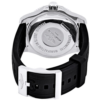 Stainless steel case with a black rubber diver pro iii strap. Uni-directional rotating bezel. Blue dial with silver-tone hands and Arabic numeral hour markers. Minute markers around the outer rim. Dial Type: Analog. Luminescent hands and markers. Date display at the 3 o'clock position. Breitling Calibre 17 automatic movement with a 38-hour power reserve. Scratch resistant sapphire crystal. Screw down crown. Solid case back. Round case shape, case size: 44 mm, case thickness: 14.20 mm. Band width: 22/20 mm. Tang clasp. Water resistant at 1000 meters / 3300 feet. Functions: chronometer, date, hour, minute, second. Luxury watch style. Watch label: Swiss Made. Item Variations: A17392D8/C910/152S/A20SS.1. Breitling Superocean II 44 Blue Dial Black Rubber Men's Watch A17392D8/C910BKPT3.