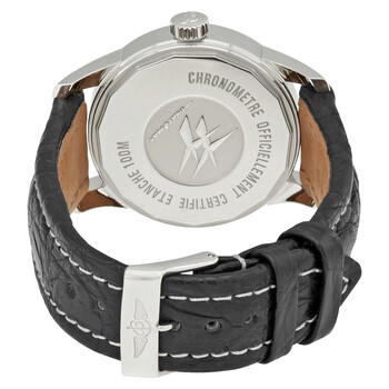 Silver-tone stainless steel case with a black leather strap. Fixed silver-tone stainless steel bezel. Black dial with luminous silver-tone hands and index hour markers. Minute markers around the outer rim. Dial Type: Analog. Luminescent hands and markers. Date display below the 12 o'clock position. One subdial displaying: small second. Breitling Calibre 16 Automatic movement, based upon ETA 2892-A2, containing 30 Jewels, bitting at 28800 vph, and has a power reserve of approximately 42 hours. Scratch resistant sapphire crystal. Pull / push - two gaskets crown. Solid case back. Round case shape, case size: 38 mm, case thickness: 12.75 mm. Band width: 20 mm. Tang clasp. Water resistant at 100 meters / 330 feet. Functions: date, hour, minute, second. Transocean 38 Series. Luxury watch style. Watch label: Swiss Made. Breitling Transocean 38 Automatic Black Dial Men's Watch A1631012-BD15BKCT.