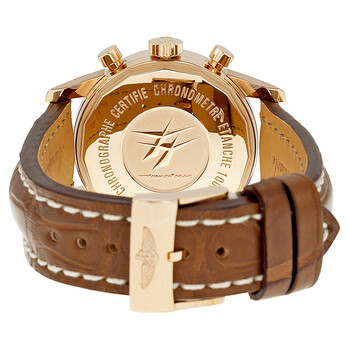 18kt rose gold case with a brown (crocodile) leather strap. Fixed 18kt rose gold bezel. Silver dial with rose gold hands and index hour markers. Minute markers. Tachymeter around the outer rim. Dial Type: Analog. Luminescent hands and markers. Date display at the 6 o'clock position. Chronograph - two sub-dials displaying: 60 second and 30 minute. Mechanical movement with a 42 hour power reserve. Scratch resistant sapphire crystal. Pull / push crown - two gaskets. Solid case back. Case diameter: 38 mm. Case thickness: 14.25 mm. Round case shape. Band width: 20 mm / 22 mm. Tang clasp. Water resistant at 100 meters / 330 feet. Functions: chronograph, date, hour, minute, second. Luxury watch style. Watch label: Swiss Made. Breitling Transocean Chronograph 38 Silver Dial 18kt Rose Gold Leather Men's Watch R4131012-G758BRCT.