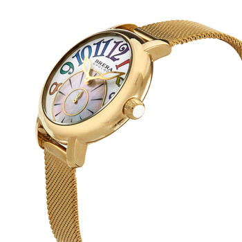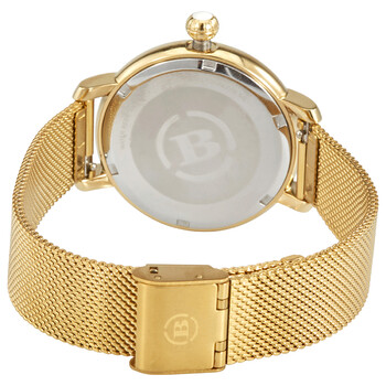 Yellow gold ion-plated stainless steel case with a yellow gold ion-plated stainless steel 316L mesh bracelet. Fixed yellow gold ion-plated bezel. White dial with luminous yellow gold-tone hands and index hour markers. Dial Type: Analog. Luminescent hands. 60 seconds sub-dial. Quartz movement. Scratch resistant mineral crystal. Screw down crown. Solid case back. Round case shape. Case size: 38 mm. Case thickness: 10 mm. Band width: 16 mm. Fold over slip through clasp. Water resistant at 50 meters / 165 feet. Functions: hour, minute. Valentina Modern Series. Casual watch style. Brera Orologi Valentina Modern Quartz White Dial Ladies Watch BRVAMO3803-YG-MIL.