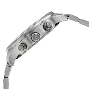 Stainless steel case with a stainless steel bracelet. Fixed stainless steel bezel. Black dial with luminous silver-tone hands and Arabic numeral / index hour markers. Minute markers around the outer rim. Dial Type: Analog. Luminescent hands. Date display at the 4 o'clock position. Chronograph - three sub-dials displaying: 60 second and 30 minute and 24 hour. Miyota caliber JS05 quartz movement. Scratch resistant sappitek crystal. Pull / push crown. Solid case back engraved with the Brooklyn bridge logo. Round case shape. Case size: 44 mm. Case thickness: 12.65 mm. Band width: 20 mm. Deployment clasp with a push button release. Water resistant at 100 meters / 330 feet. Functions: chronograph, day, GMT, hour, minute, second. Sport watch style. Watch label: Japan Movt. Brooklyn Watch Co. Bedford Brownstone Quartz Black Dial Men's Watch 308-BLK-3.