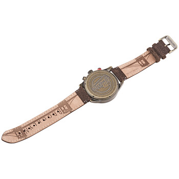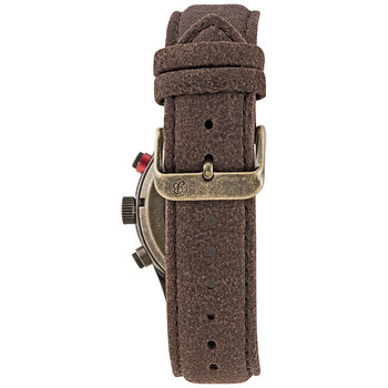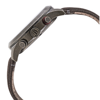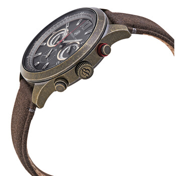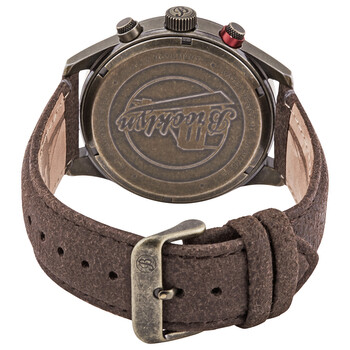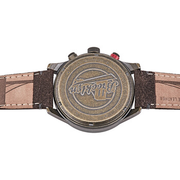 Antique bronze stainless steel case with a brown leather strap. Fixed antique bronze bezel. Black dial with luminous silver-tone hands and index hour markers. A Roman numerals appears at the 12 o'clock position. Minute markers. 24 hour markers around the outer rim. Dial Type: Analog. Luminescent hands and markers. Three multi-function sub-dials displaying: 24 hour, date and day of the week. Calibre VX quartz movement. Scratch resistant sapphire crystal. Pull / push crown. Solid case back. Round case shape. Case size: 45 mm. Band width: 22 mm. Tang clasp. Water resistant at 50 meters / 165 feet. Functions: date, day, GMT, second time zone, hour, minute, second. Casual watch style. Watch label: Japan Movt. Brooklyn Watch Co. Stuyvesant Quartz Black Dial Men's Watch BW-8128-CQ-014-BRW.