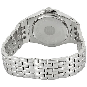 . Stainless steel case with a stainless steel bracelet set with baguette crystals. Fixed stainless steel bezel set with baguette crystals. Blue dial with silver-tone hands and baguette crystral hour markers. Minute markers around the outer rim. Dial Type: Analog. Quartz movement. Scratch resistant mineral crystal. Pull / push crown. Solid case back. Round case shape. Case size: 42 mm. Case thickness: 9.65 mm. Fold over clasp. Water resistant at 30 meters / 100 feet. Functions: hour, minute, second. Crystal Series. Casual watch style. Bulova Crystal Quartz Blue Dial Men's Watch 96A254.