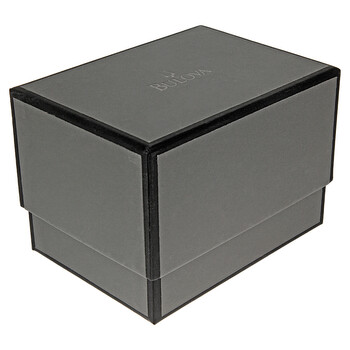 Rose gold-tone stainless steel case with a black rubber strap. Fixed rose gold-tone bezel. Black dial with luminous rose gold-tone hands and alternating index and Roman numeral hour markers. Minute markers around the outer rim. Dial Type: Analog. Luminescent hands and markers. Date display between the 4 and 5 o'clock positions. Chronograph - three sub-dials displaying: 60 seconds, 60 minutes and 24 hours. Quartz movement. Scratch resistant mineral crystal. Pull / push crown. Solid case back. Round case shape. Case size: 44 mm. Case thickness: 12 mm. Band width: 22 mm. Band length: 8.5 inches. Tang clasp. Water resistant at 100 meters / 330 feet. Functions: chronograph, date, hour, minute, second, GMT. Casual watch style. Watch label: Japan. Bulova Marine Star Men's Watch 98B104.