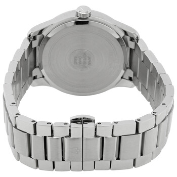 Silver-tone stainless steel case and bracelet. Fixed silver-tone stainless steel bezel. Blue dial with silver-tone hands and index-Roman numeral hour markers. Minute markers around the outer rim. Dial Type: Analog. Date display at the 3 o'clock position. Miyota Caliber 2415 quartz movement. Scratch resistant mineral crystal. Pull / push crown. Solid case back. Round case shape, case size: 41 mm. Band width: 22 mm. Deployant clasp. Water resistant at 30 meters / 100 feet. Functions: date, hour, minute, second. Wilton Classic Series. Casual watch style. Watch label: Japan Movt. Bulova Wilton Classic Quartz Blue Dial Men's Watch 96B386.