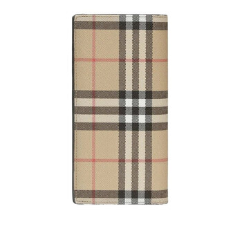 Burberry Men's Wallets. SKU: 8065640. Barcode: 5045701005423. Color: Archive Beige. Size: 7.5 x 3.7in. Burberry Archive Beige Cavendish Vintage Check Continental Wallet. A continental wallet redesigned in Burberry's Vintage Check, featuring 16 card slots, a zip compartment, a note compartment for all currencies, three slip pockets, hand-painted edges, and polished metal hardware. Outer: 75% polyurethane, 25% cotton.