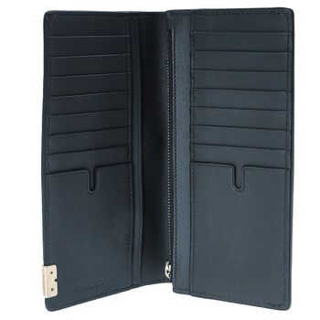 Burberry Men's Wallets. SKU: 8085282. Barcode: 5045705574932. Color: Lake. Burberry B Cut Continental Wallet. Crafted from pebbled calf leather, this bi-fold wallet features a silver-tone logo plaque, debossed internal logo, multiple card slots, note compartments, and an internal zip-fastening pocket.