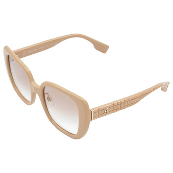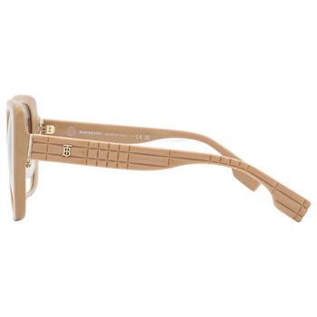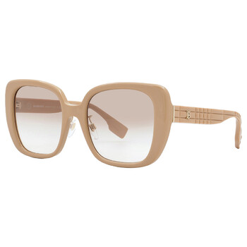 Burberry Sunglasses. Series number: BE4371F. Color code: 399013. Shape: Butterfly. Lens Width: 52 mm. Lens Bridge: 20 mm. Arm Length: 140 mm. 100% UV protection. Non-Polarized. Frame Material: Plastic. Frame Color: Beige. Lenses Type: Brown Gradient. Rim Style: Full-Rim. UPC/EAN code: 8056597746687. Burberry Brown Gradient Butterfly Ladies Sunglasses BE4371F 399013 54.