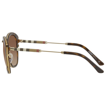 Burberry Sunglasses. Series number: BE4251Q. Color code: 300213. Size: 53. Shape: Round. Lens Width: 53 mm. Lens Bridge: 20 mm. Arm Length: 140 mm. 100% UV protection. Non-Polarized. Frame Material: Metal. Frame Color: Dark Havana. Lenses Type: Brown Gradient. Rim Style: Full-Rim. UPC/EAN code: 8053672768671. Burberry Brown Gradient Round Ladies Sunglasses BE4251Q 300213 53.