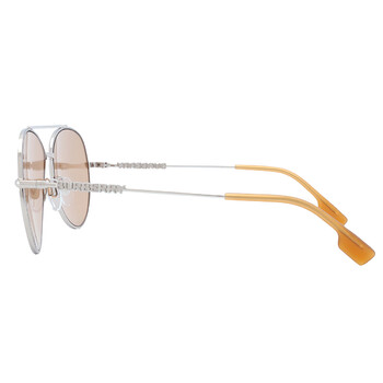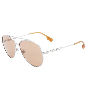 Burberry Sunglasses. Series number: BE3147. Color code: 1344M4. Shape: Pilot. Lens Width: 58 mm. Lens Bridge: 14 mm. Arm Length: 140 mm. 100% UV protection. Non-Polarized. Frame Material: Metal. Frame Color: Silver. Lenses Type: Brown Photochromatic. Rim Style: Full-Rim. UPC/EAN code: 8056597925167. Burberry Brown Photochromatic Pilot Ladies Sunglasses BE3147 1344M4 58.