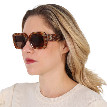 Burberry Sunglasses. Series number: BE4327. Color code: 391573. Shape: Square. Lens Width: 51 mm. Lens Bridge: 23 mm. Arm Length: 140 mm. 100% UV protection. Non-Polarized. Frame Material: Plastic. Frame Color: Brown. Lenses Type: Brown. Rim Style: Full-Rim. UPC/EAN code: 8056597338462. Burberry Brown Square Ladies Sunglasses BE4327 391573 51.