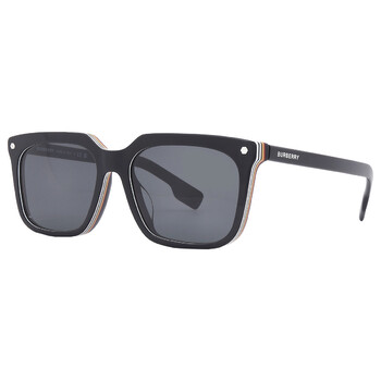 Burberry Sunglasses. Series Carnaby. Series number: BE4337F. Color code: 379887. Shape: Square. Lens Width: 56 mm. Lens Bridge: 17 mm. Arm Length: 145 mm. 100% UV protection. Non-Polarized. Frame Material: Plastic. Frame Color: Black. Lenses Type: Dark Gray. Rim Style: Full-Rim. UPC/EAN code: 8056597433556. Burberry Carnaby Dark Gray Square Men's Sunglasses BE4337F 379887 56.