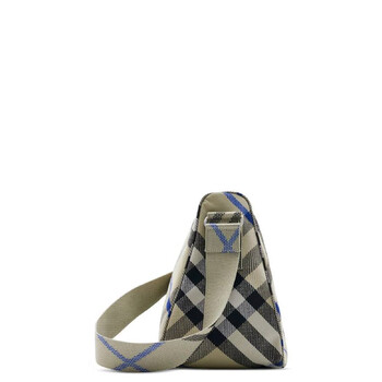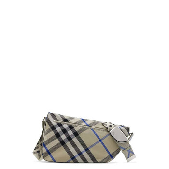 Burberry Men's Messenger. SKU: 8089306. Size: W:42cm x H:17cm x D:25cm. Burberry Check Pattern Shield Messenger Bag. This messenger bag features an asymmetric design, a top zip fastening, an adjustable shoulder strap, a rear zip fastening, a main compartment, leather lining, and silver-tone hardware.100% Calf Leather. Made in Italy.