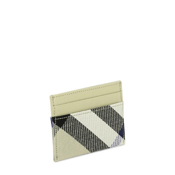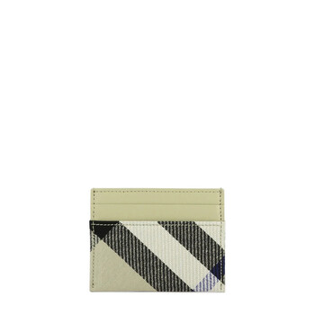 Burberry Ladies Card Case. SKU: 8085985. Barcode: 5045705630287. Color: Lichen. Size: W:10cm x H:7.5cm x D:0.5cm. Burberry Checked Leather Cardholder. This checked leather cardholder features panel detailing and multiple card slots for added functionality. Lambskin 100%, Polyester 65%, Cotton 35% Made in Italy.