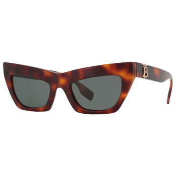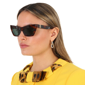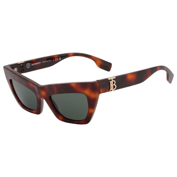 Burberry Sunglasses. Series number: BE4405. Color code: 331671. Shape: Cat Eye. Lens Width: 51 mm. Lens Bridge: 21 mm. Arm Length: 140 mm. 100% UV protection. Non-Polarized. Frame Material: Acetate. Frame Color: Light Havana. Lenses Type: Dark Green. Rim Style: Full-Rim. UPC/EAN code: 8056597924092. Burberry Dark Green Cat Eye Ladies Sunglasses BE4405 331671 51.