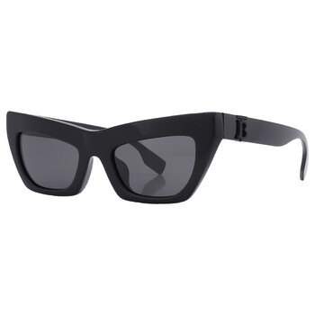 Burberry Sunglasses. Series number: BE4405F. Color code: 409387. Shape: Cat Eye. Lens Width: 51 mm. Lens Bridge: 21 mm. Arm Length: 140 mm. 100% UV protection. Frame Material: Acetate. Frame Color: Black. Lenses Type: Dark Grey. Rim Style: Full-Rim. UPC/EAN code: 8056597948661. Burberry Dark Grey Cat Eye Ladies Sunglasses BE4405F 409387 51.