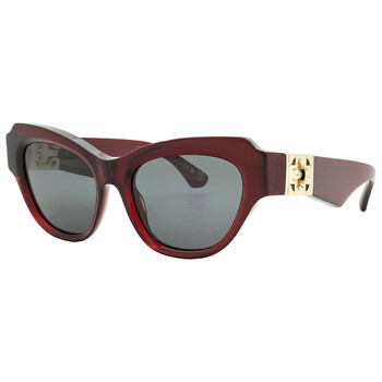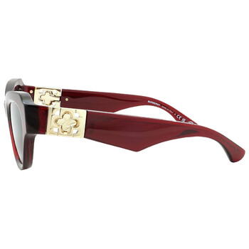 Burberry Sunglasses. Series number: BE44234. Color code: 412887. Shape: Cat Eye. Lens Width: 52 mm. Lens Bridge: 18 mm. Arm Length: 130 mm. 100% UV protection. Non-Polarized. Frame Material: Acetate. Frame Color: Bordeaux. Lenses Type: Dark Grey. Rim Style: Full-Rim. UPC/EAN code: 8056262094594. Burberry Dark Grey Cat Eye Ladies Sunglasses BE4423 412887 52.