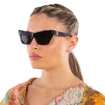 Burberry Sunglasses. Series number: BE4405. Color code: 300187. Shape: Cat Eye. Lens Width: 51 mm. Lens Bridge: 21 mm. Arm Length: 140 mm. 100% UV protection. Non-Polarized. Frame Material: Plastic. Frame Color: Black. Lenses Type: Dark Grey. Rim Style: Full-Rim. UPC/EAN code: 8056597924085. Burberry Dark Grey Cat Eye Sunglasses BE4405 300187 51.