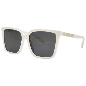 Burberry Sunglasses. Series number: BE4411D. Color code: 410087. Shape: Square. Lens Width: 57 mm. Lens Bridge: 17 mm. Arm Length: 140 mm. 100% UV protection. Non-Polarized. Frame Material: Acetate. Frame Color: Ivory. Lenses Type: Dark Grey. Rim Style: Full-Rim. UPC/EAN code: 8056597945417. Burberry Dark Grey Square Ladies Sunglasses BE4411D 410087 57.