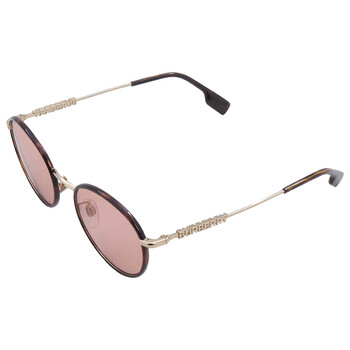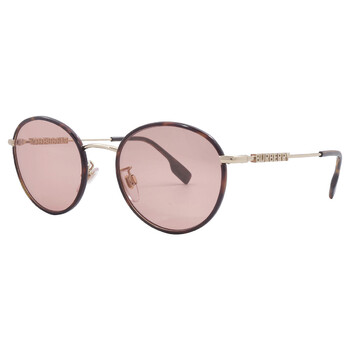Burberry Sunglasses. Series number: BE3148D. Color code: 132284. Shape: Round. Lens Width: 51 mm. Lens Bridge: 20 mm. Arm Length: 140 mm. 100% UV protection. Non-Polarized. Frame Material: Metal. Frame Color: Dark Havana/Light Gold. Lenses Type: Dark Pink. Rim Style: Full-Rim. UPC/EAN code: 8056597951692. Burberry Dark Pink Round Ladies Sunglasses BE3148D 132284 51.