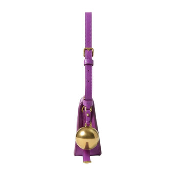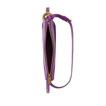 Burberry Ladies Shoulder Bag. SKU: 8075573. Color: Thistle. Size: 10.2 x 2.2 x 5.3in. Burberry EKD Nappa Leather Mini Sheild Sling Bag. This shoulder bag is crafted from lambskin and features a debossed logo on the front. It has gold-tone hardware, a charm detail, and a top zip fastening. The bag includes an adjustable shoulder strap and a main compartment. Outer: 100% lambskin .