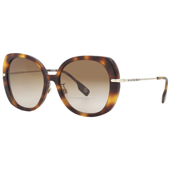 Burberry Sunglasses. Series Eugenie. Series number: BE4374F. Color code: 331613. Shape: Butterfly. Lens Width: 55 mm. Lens Bridge: 17 mm. Arm Length: 140 mm. 100% UV protection. Non-Polarized. Frame Material: Plastic. Frame Color: Light Havana. Lenses Type: Brown Gradient. Rim Style: Full-Rim. UPC/EAN code: 8056597745451. Burberry Eugenie Brown Gradient Butterfly Ladies Sunglasses BE4374F 331613 55.