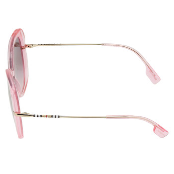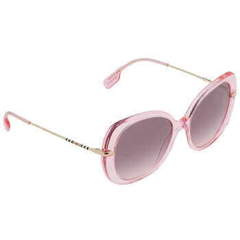 Burberry Sunglasses. Series Eugenie. Series number: BE4374. Color code: 40245M. Shape: Butterfly. Lens Width: 55 mm. Lens Bridge: 17 mm. Arm Length: 140 mm. 100% UV protection. Frame Material: Plastic. Frame Color: Pink. Lenses Type: Rose Gradient. Rim Style: Full-Rim. UPC/EAN code: 8056597713139. Burberry Eugenie Rose Gradient Butterfly Ladies Sunglasses BE4374 40245M 55.
