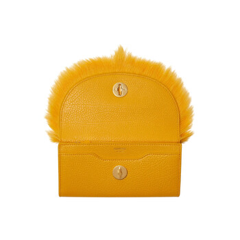 Burberry Ladies Wallets. SKU: 8077997. Color: Mimosa. Size: 7.7 x 1.4 x 4.1in. Burberry Faux Fur Chess Continental Wallet. Chess continental wallet inspired by the monster-fluff heels featured in Daniel Lee's inaugural first collection, it’s pocked-sized fun for the fashion-inclined, packed with everything you need for a successful shopping trip: 12 card slots, two slip pockets and a zipped compartment. Outer: 100% calf leather. Inner: 100% sheep leather. Made in Italy.