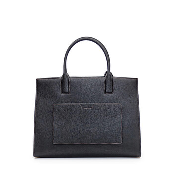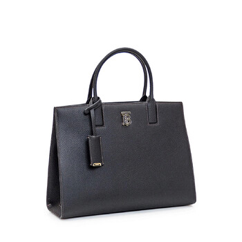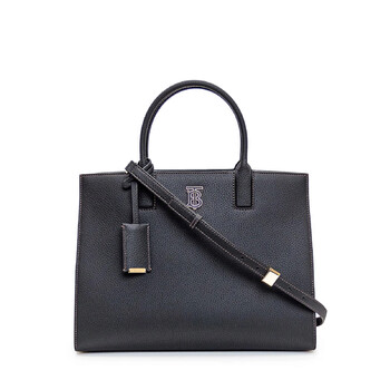 Burberry Ladies Satchel. SKU: 8060974. Material: Calfskin;Lambskin. Color: Black. Size: W:32.5cm x H:25cm x D:12m. Burberry Frances Top Handle Tote Bag. This tote features rolled leather top handles, a detachable and adjustable shoulder strap, an open top with a magnetic closure, an exterior slip pocket, an interior zip pocket, and two interior slip pockets, with hand-painted edges, polished metal hardware, and a Nappa leather lining. Outer: 100% calf leather, Lining: 100% lambskin. Made in Italy.