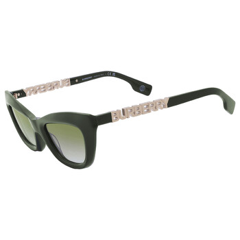 Burberry Sunglasses. Series number: BE4409. Color code: 40388E. Shape: Cat Eye. Lens Width: 51 mm. Lens Bridge: 21 mm. Arm Length: 140 mm. 100% UV protection. Non-Polarized. Frame Material: Plastic. Frame Color: Green. Lenses Type: Green Gradient. Rim Style: Full-Rim. UPC/EAN code: 8056597920803. Burberry Green Gradient Cat Eye Ladies Sunglasses BE4409 40388E 51.