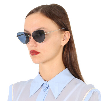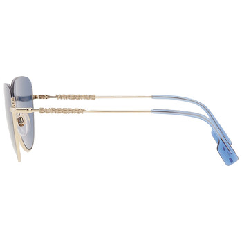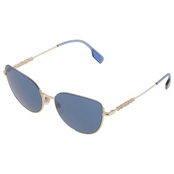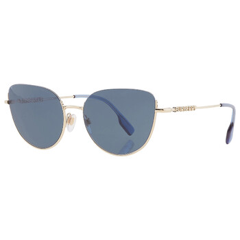 Burberry Sunglasses. Series Harper. Series number: BE3144. Color code: 110980. Shape: Cat Eye. Lens Width: 58 mm. Lens Bridge: 18 mm. Arm Length: 140 mm. 100% UV protection. Frame Material: Metal. Frame Color: Light Gold. Lenses Type: Blue. Rim Style: Semi-Rimless. UPC/EAN code: 8056597832953. Burberry Harper Blue Cat Eye Ladies Sunglasses BE3144 110980 58.