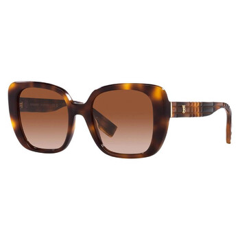 Burberry Sunglasses. Series Helena. Series number: BE4371. Color code: 331613. Shape: Square. Lens Width: 52 mm. Lens Bridge: 20 mm. Arm Length: 140 mm. 100% UV protection. Frame Material: Plastic. Frame Color: Light Havana. Lenses Type: Brown Gradient. Rim Style: Full-Rim. UPC/EAN code: 8056597726894. Burberry Helena Brown Gradient Square Ladies Sunglasses BE4371 331613 52.