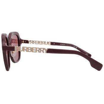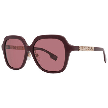Burberry Sunglasses. Series Joni. Series number: BE4389F. Color code: 397969. Shape: Square. Lens Width: 55 mm. Lens Bridge: 16 mm. Arm Length: 140 mm. 100% UV protection. Non-Polarized. Frame Material: Plastic. Frame Color: Bordeaux. Rim Style: Full-Rim. UPC/EAN code: 8056597982313. Burberry Joni Square Ladies Sunglasses BE4389F 397969 55.